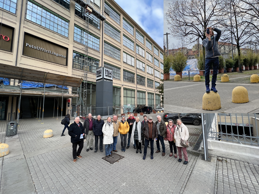 Geplant war ein Besuch der in Deutschland angekündigten Automotoretro Torino, sowie der Besuch des nationalen italienischen Automobilmuseums. Auch die Stadt als solche mit ihren Kilometer langen Arkaden, ihren großartigen Cafes und den sehenswerten Palästen und Museen stand neben verschiedenen anderen Anlaufpunkten auf unserer Besuchsliste. Als Unterkunft wählten wir ganz stilecht das NH –Hotel in der alten Fiat Fabrik Lingotto direkt in Turin, welche weltweit als Industriedenkmal bekannt ist. Eine Einfahrbahn für neu gefertigte FIAT–Automobile mit einer Gesamtlänge von mehr als einem Kilometer sowie zwei Steilkurven sind dort auf dem Dach der Fabrik heute noch zu bestaunen.