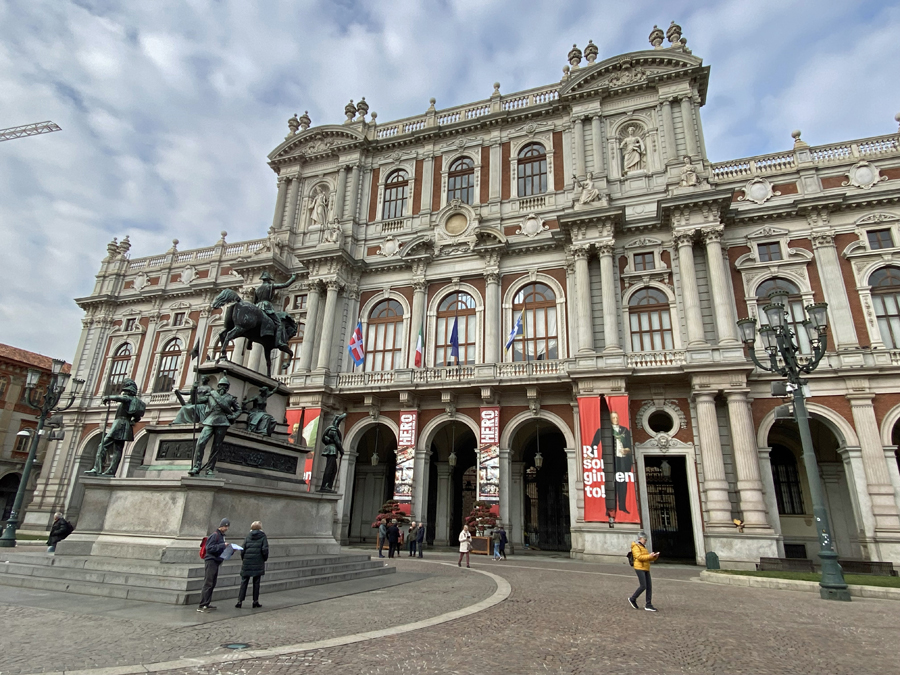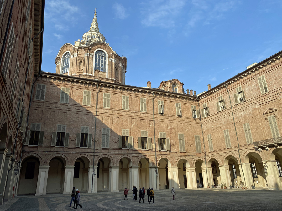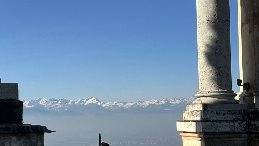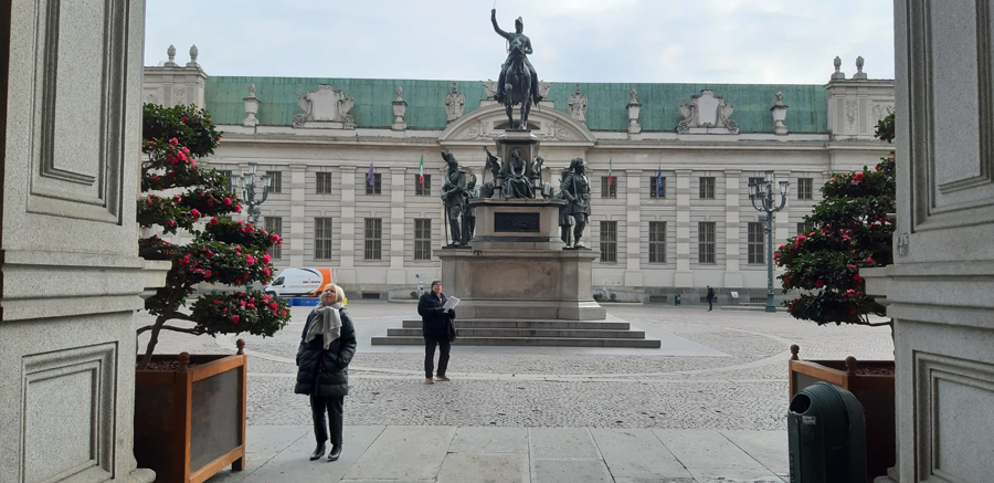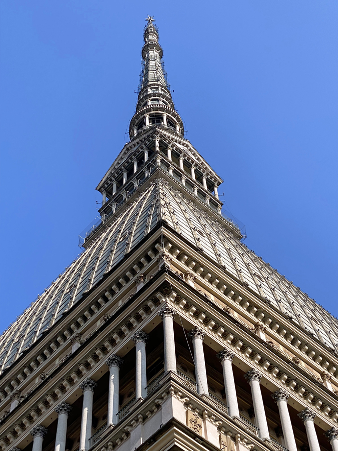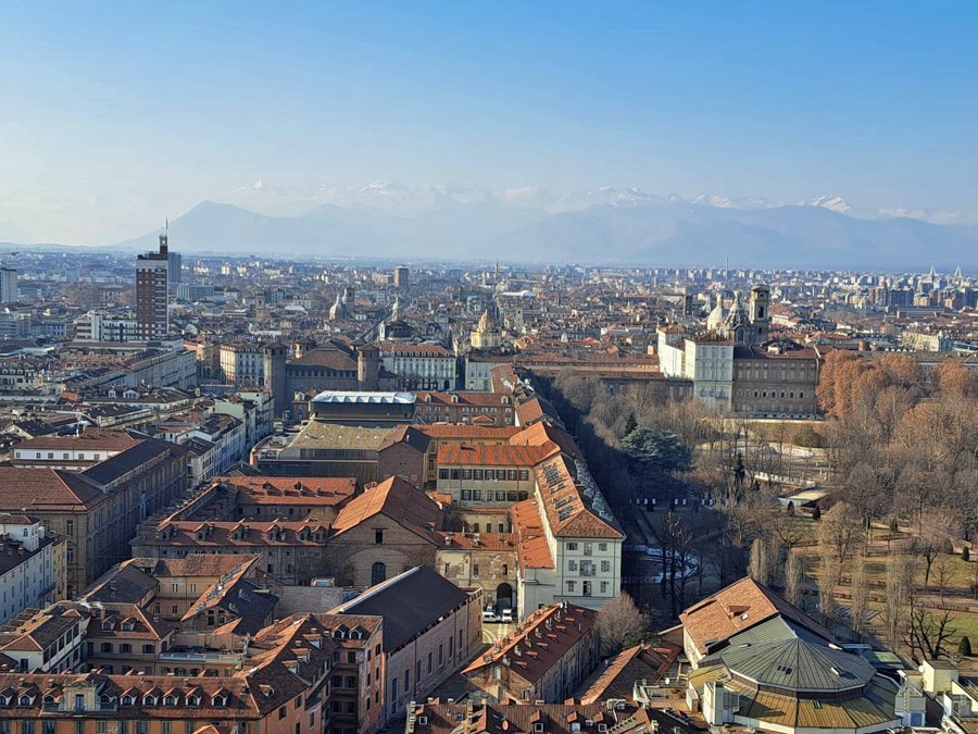 Nach diesem Schreck genossen wir jedoch am Abend die angebotenen Köstlichkeiten der Osteria FIAT ganz in der Nähe unseres Hotels. Am nächsten Tag erkundeten wir, wie geplant, die Altstadt von Turin und wagten einen kühnen Blick vom Wahrzeichen der Stadt, der Mole Antonelliana, über die Dächer von Turin und auf die schneebedeckte Alpenkette im Hintergrund.