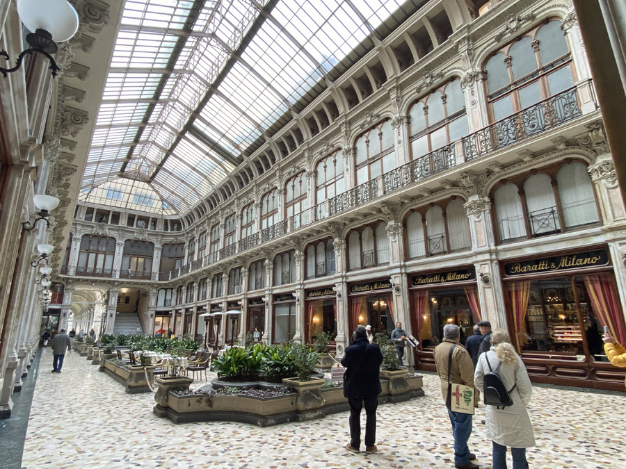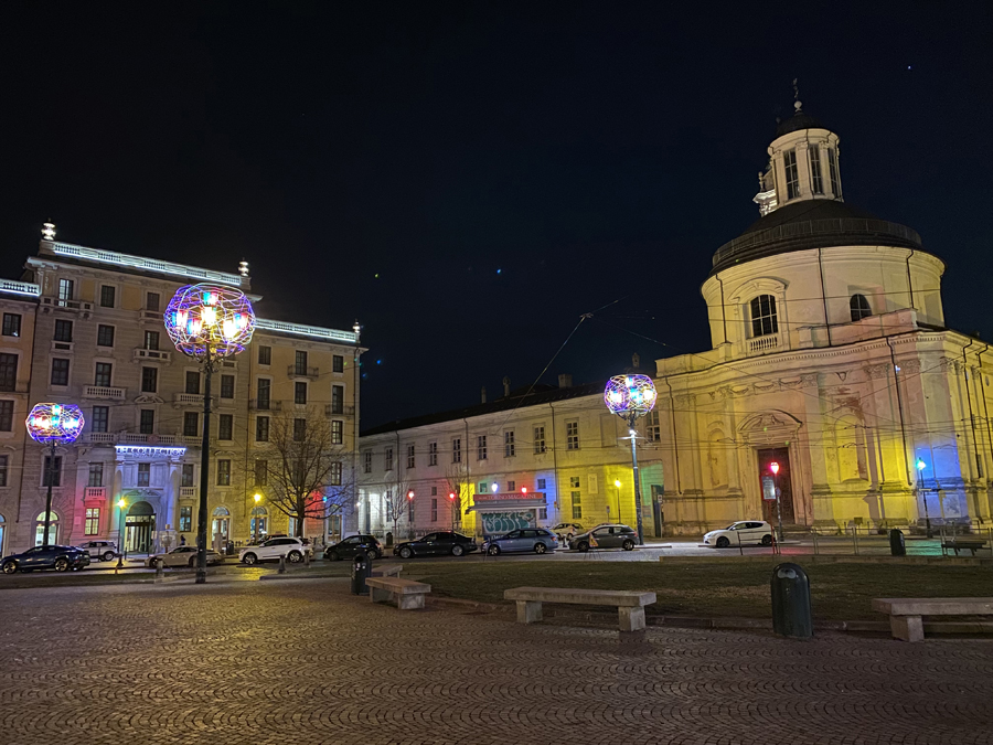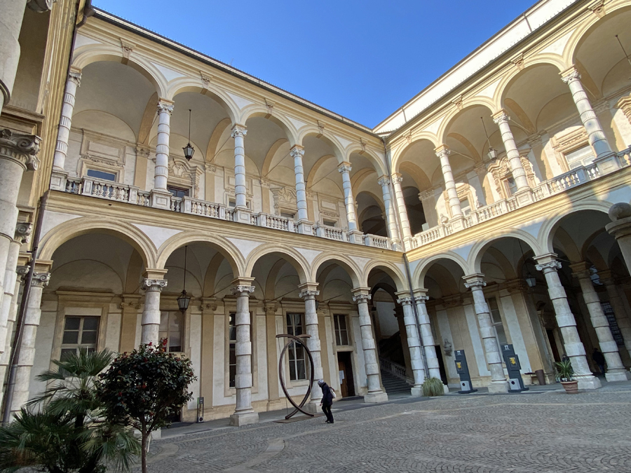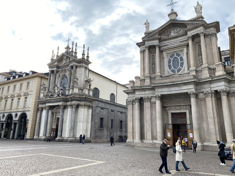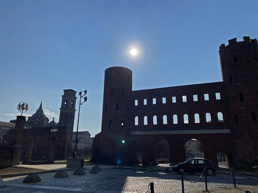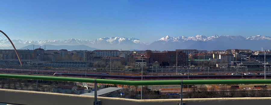 Nach diesem Schreck genossen wir jedoch am Abend die angebotenen Köstlichkeiten der Osteria FIAT ganz in der Nähe unseres Hotels. Am nächsten Tag erkundeten wir, wie geplant, die Altstadt von Turin und wagten einen kühnen Blick vom Wahrzeichen der Stadt, der Mole Antonelliana, über die Dächer von Turin und auf die schneebedeckte Alpenkette im Hintergrund.