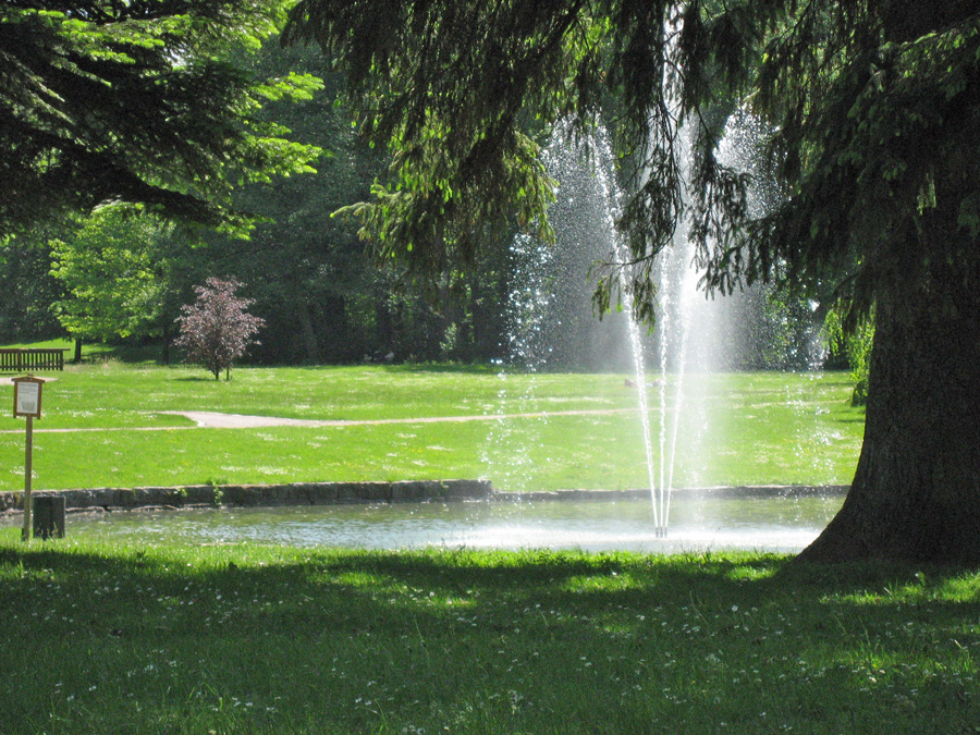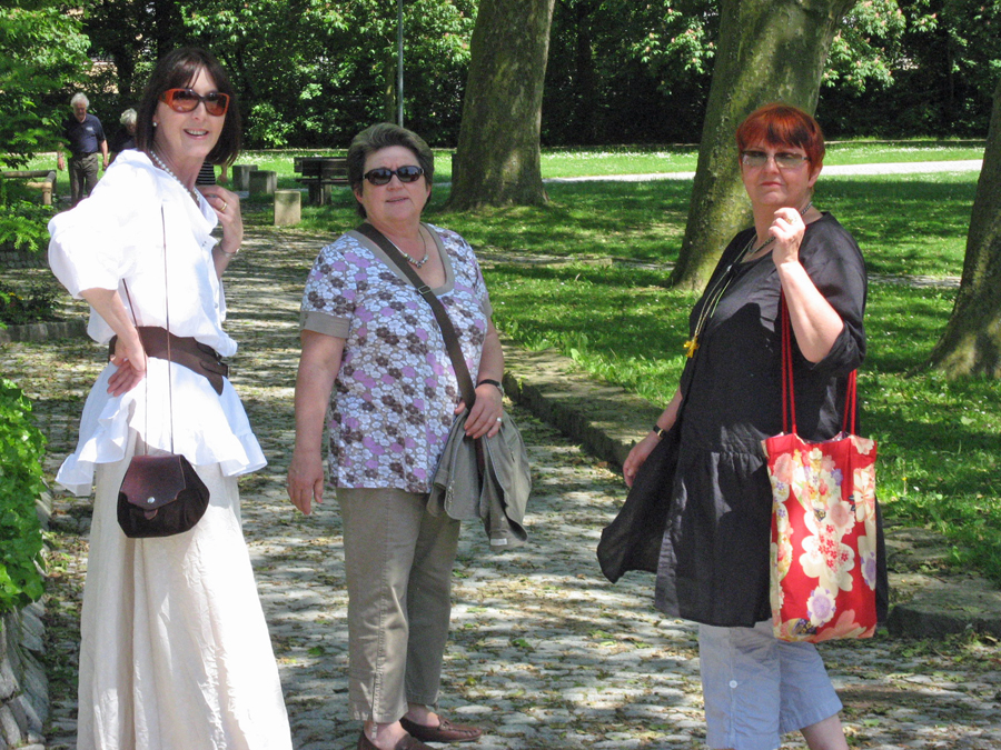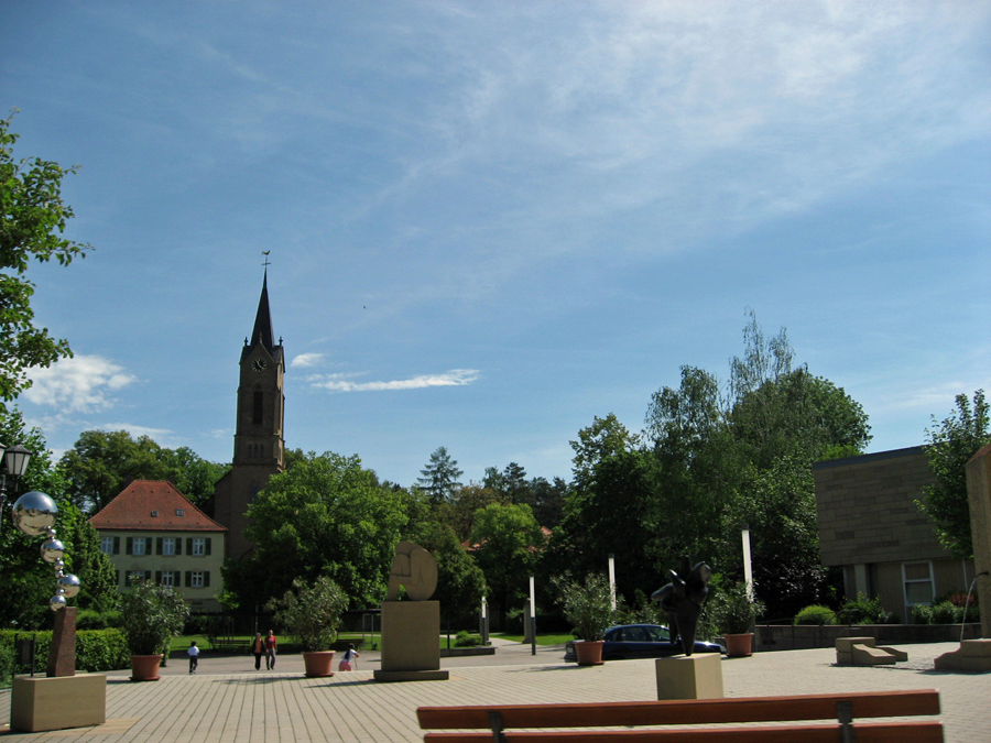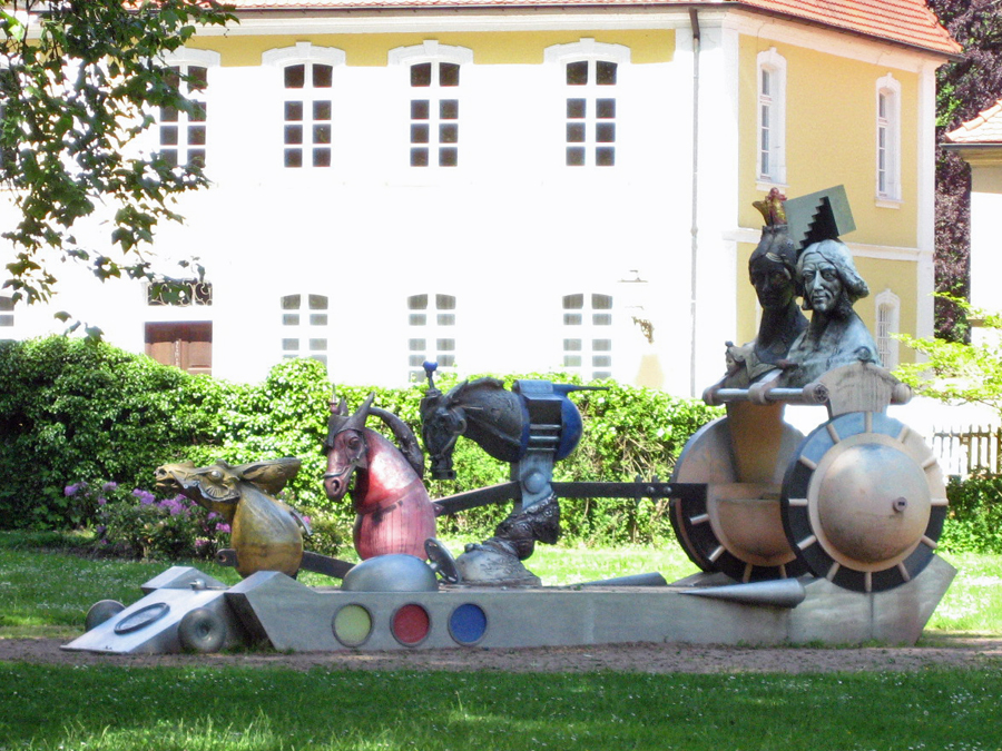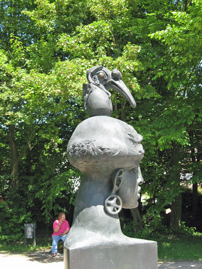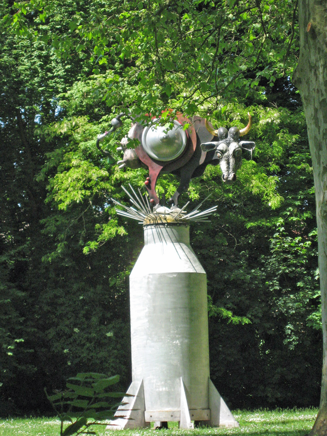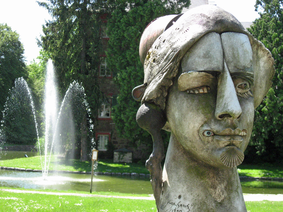 Wer gut isst, der sollte anschließend etwas die Beine bewegen. Sprach’s und ab ging der Spaziergang zum nahe gelegenen Wasserschloß Menzingen. Der Park ist sehr weitläufig und lädt zum Verweilen ein. Die Skulpturen sind erfrischend anders und bilden einen guten Kontrast zum Ambiente der Parkanlage. Das haben wir sehr genossen, die Bilder belegen das wohl.