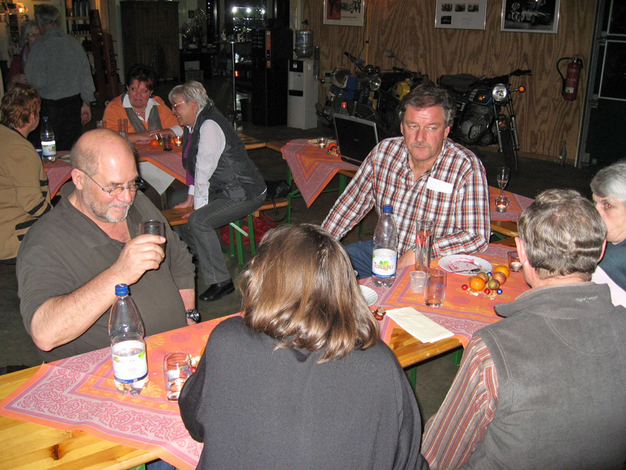 Per Beamer werden die gesammelten digitalen Erinnerungen an unsere Ausfahrten noch einmal durchlebt, so mancher sieht sich und sein heilix Bleche dabei aus ungewohnter Perspektive.