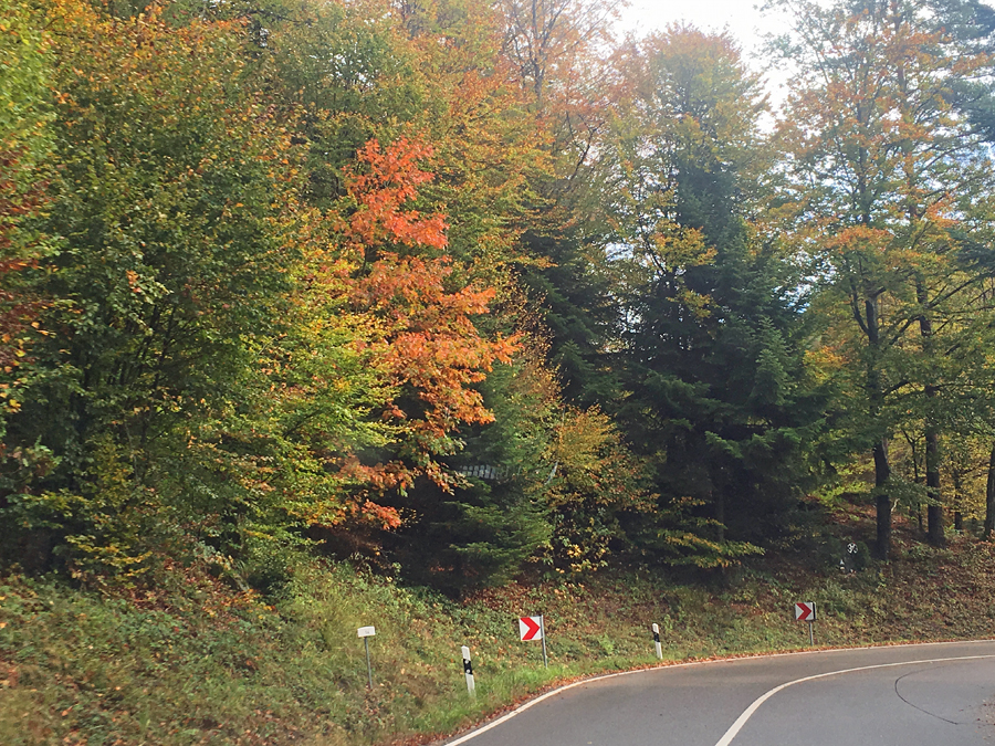 Die Weiterfahrt durch die Herbstfarben führte uns über Baden-Baden an die Fähre Greffern und danach in Frankreich nach Roeschwoog, wo uns das "La Couronne de Roeschwoog" erwartete.