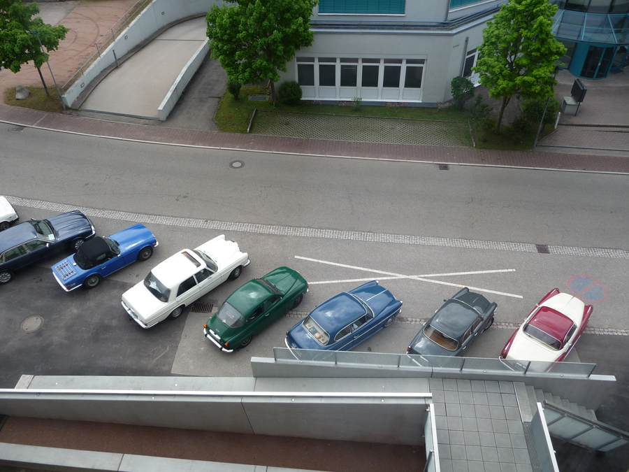 In Richtung Oberndorf bei leider leicht einsetzendem Regen ging es am Neckar entlang nach Sulz, von da aus wieder über Höhen, Wälder und Felder in das Tal der Glatt. Im Innenhof des Wasserschlosses Glatt wurden wir mit unseren Fahrzeugen schon erwartet. Wir parkten und trugen rein zufällig mit dazu bei, den „internationalen Museumstag“ zu bereichern.