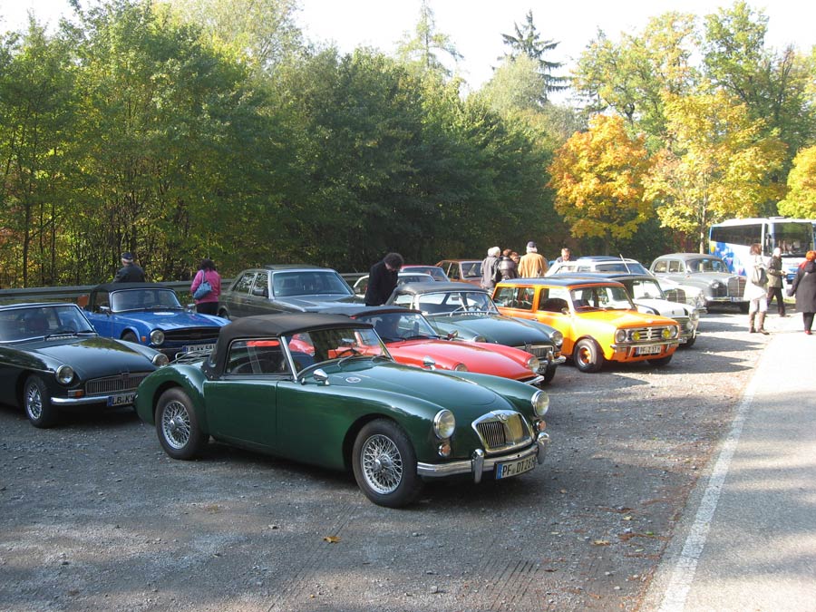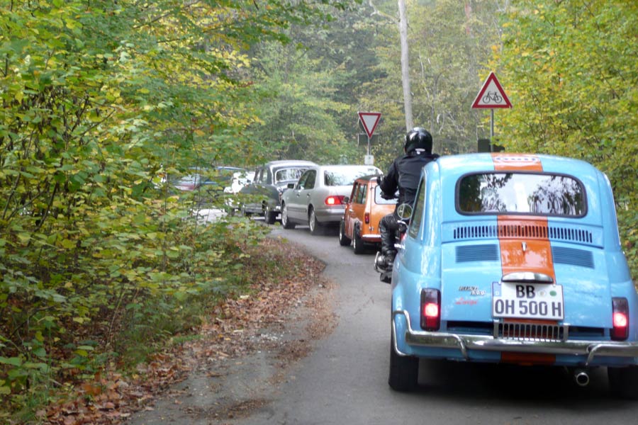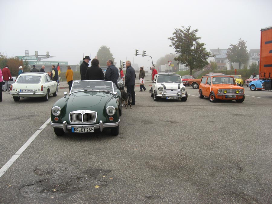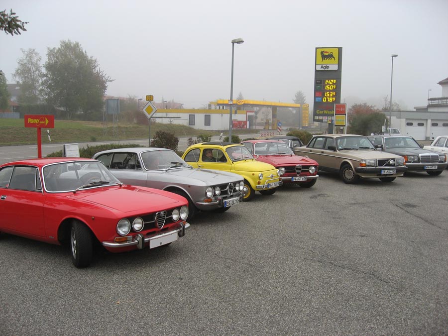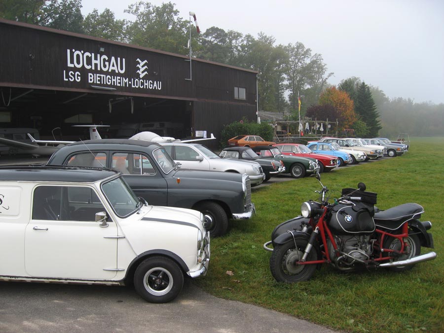 Leider zu Beginn im Nebel unterwegs waren am Sonntag 23 klassische Fahrzeuge der Marken BMW (Motorrad!), Alfa Romeo, Borgward, MG, Mercedes, VW, Mini Cooper und Fiat. Letztere in Form eines 500er, 'Luigi' genannt und im Styling eines Renngefährts gehalten.