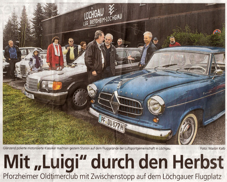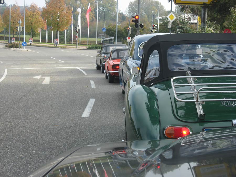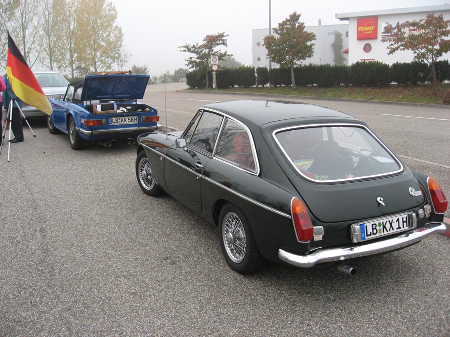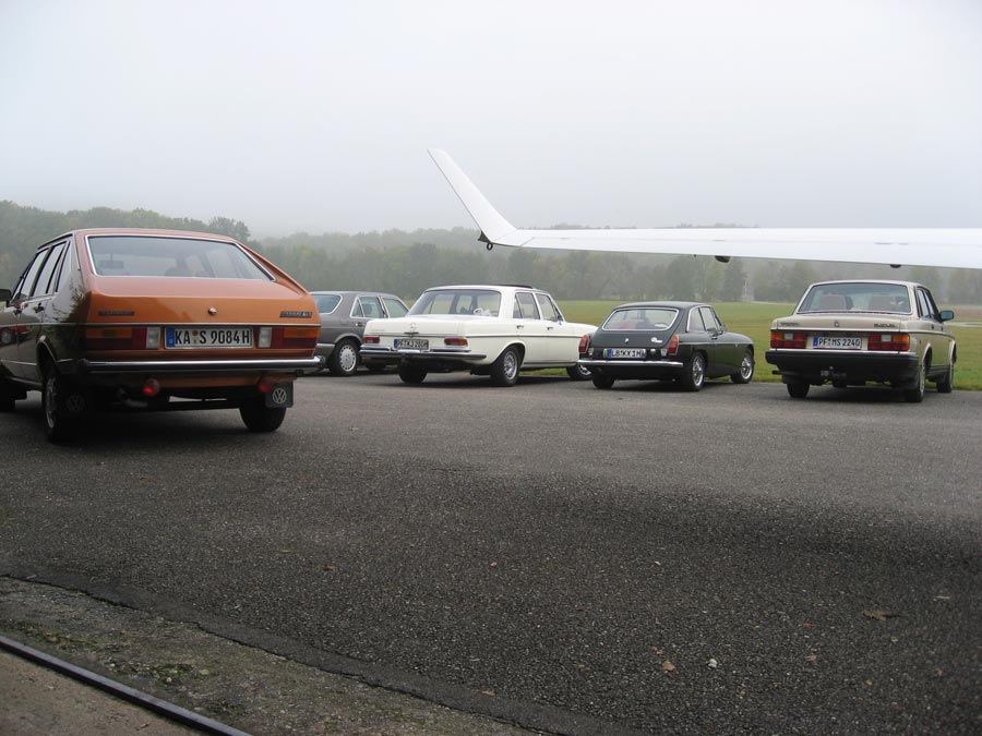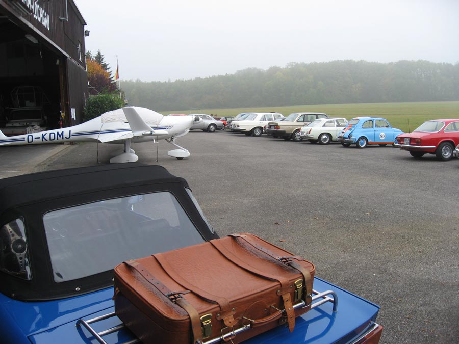 Leider zu Beginn im Nebel unterwegs waren am Sonntag 23 klassische Fahrzeuge der Marken BMW (Motorrad!), Alfa Romeo, Borgward, MG, Mercedes, VW, Mini Cooper und Fiat. Letztere in Form eines 500er, 'Luigi' genannt und im Styling eines Renngefährts gehalten.