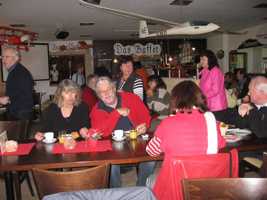 Den ersten Stop machten wir auf dem Fluggelände der Luftsportgemeinschaft in Löchgau. Ein üppiges Frühstücks-Büfett im Flugplatz-Restaurant erwartete uns und die Erwartungen wurden nicht nur kulinarisch übertroffen. Der Vorstand des Flugplatzes ließ es sich nicht nehmen, uns persönlich den Club vorzustellen und anhand zweier Flugzeuge die Technik zu erklären. Petrus meinte es ab jetzt gut mit uns und ließ uns fortan in der Sonne fahren.