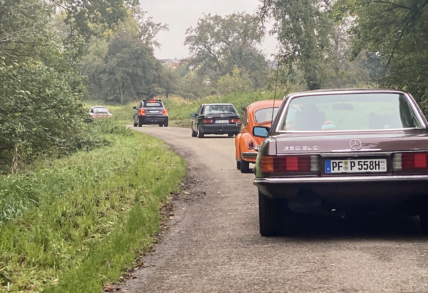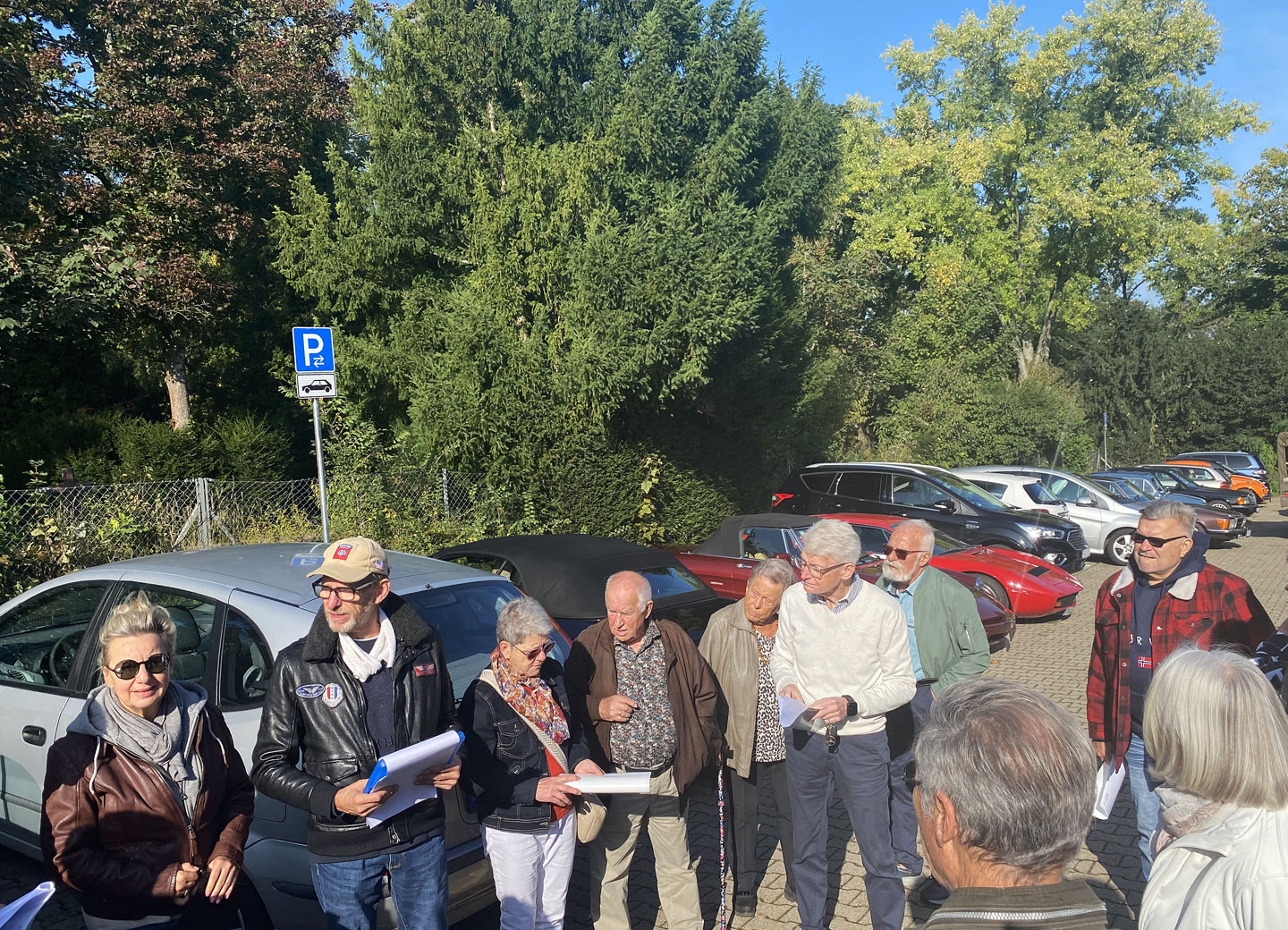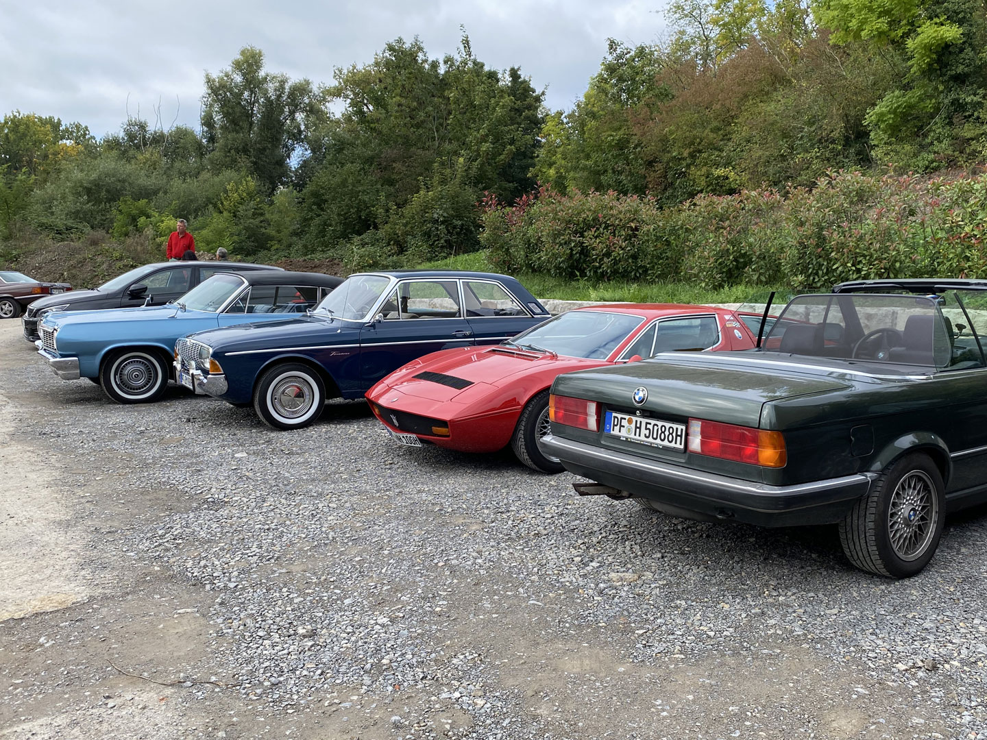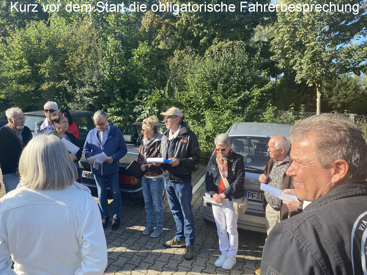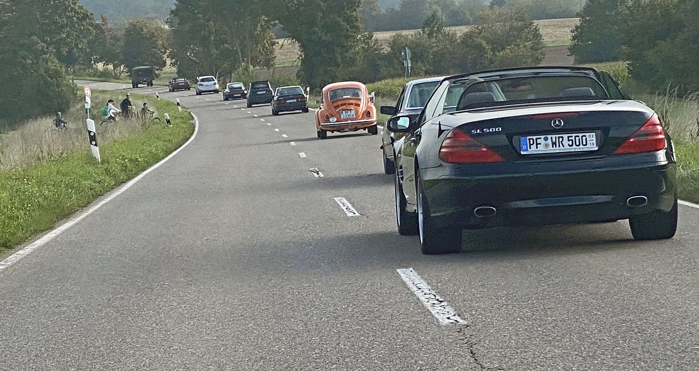45 Teilnehmende mit einem breitgefächerten Portfolio von 23 Klassikern treffen morgens am Parkplatz an der Eisinger Landstraße in Pforzheim ein.