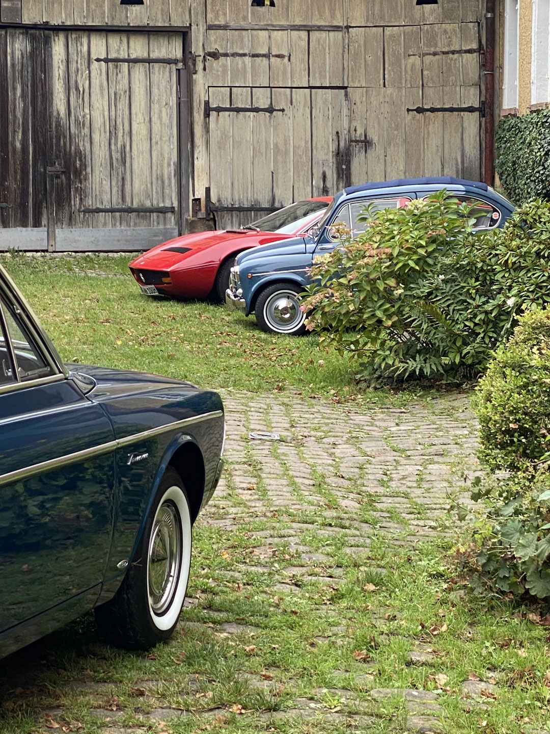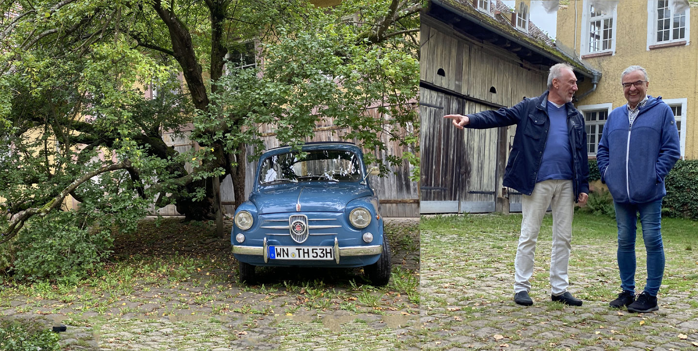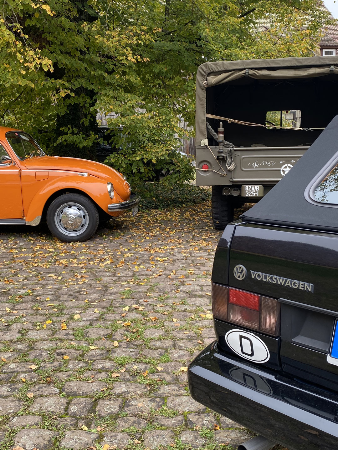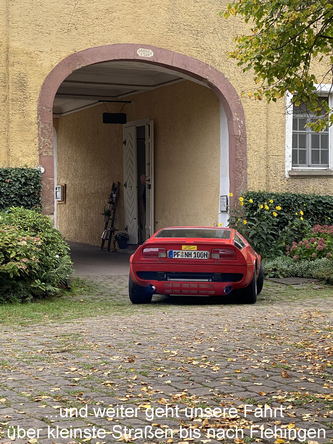 Kühl, aber sonnig, startet die Tour über Kieselbronn und einem nicht jedem bekannten Abzweig nach Dürrn; vorbei an der „Bettlereiche“, einem knorrigen, jahrhundertealten Charakterbaum. 30 Minuten später durchgleiten die ersten Fahrzeuge das große Eingangsportal zum Innenhof des Bauschlotter Schlosses. Goldene und orangene Käfer, ein roter Maserati Bora, sowie bunte Preziosen von Chevrolet, von Ford bis Jaguar und Porsche füllen stilecht das sie umgebende herrschaftliche Ambiente aus dem 18./19. Jahrhundert.