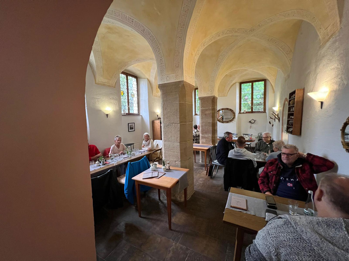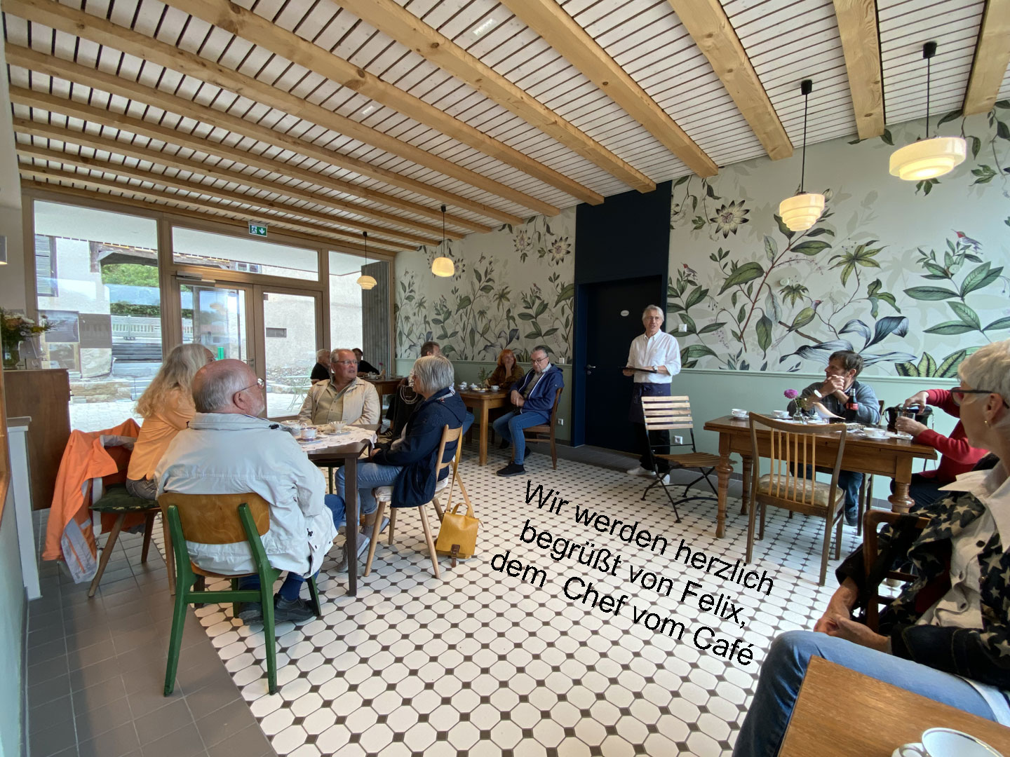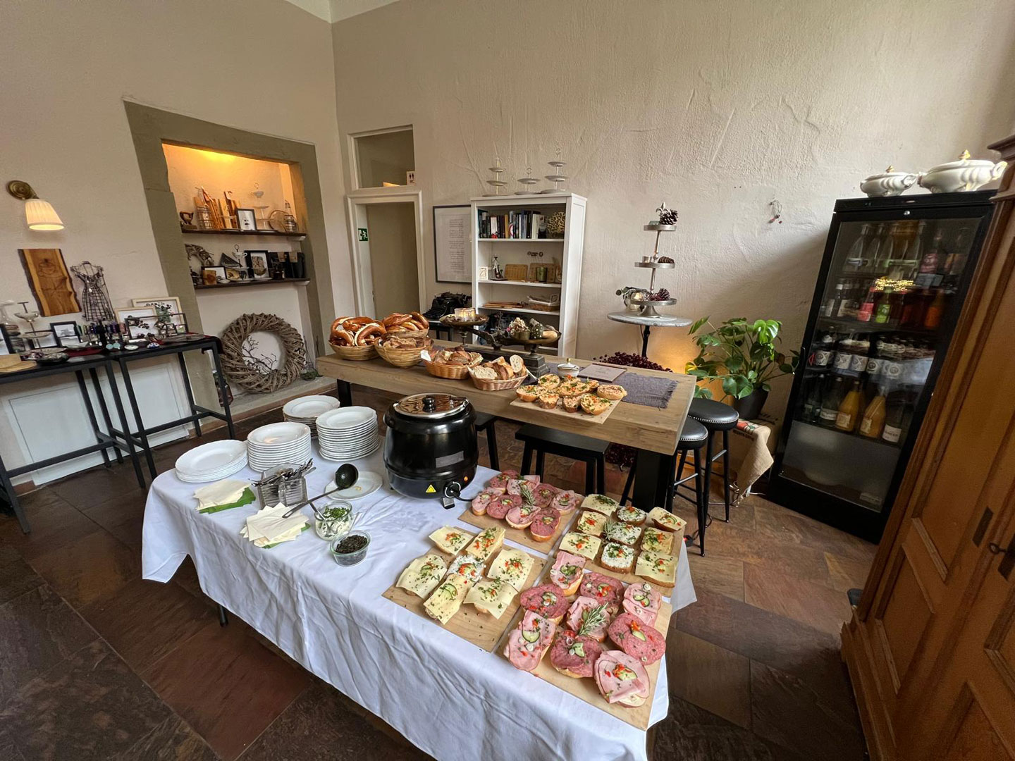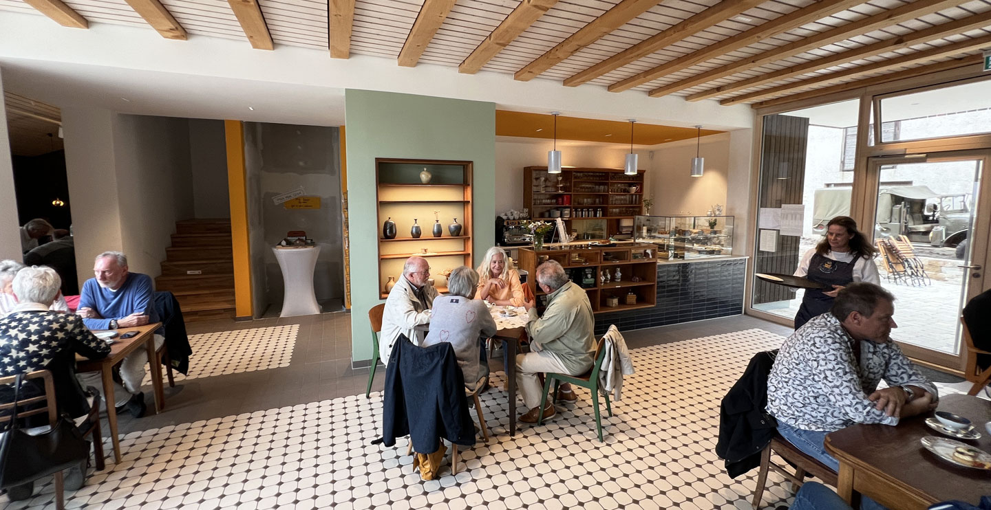Kaffeeduft mischt sich in die Benzingespräche und lockt in das „Café 1764“. Mit strahlendem Lachen empfängt uns das Café-Team. Wir genießen den Brunch bei herzhafter Kürbiscremesuppe und fein belegten Schnittchen.