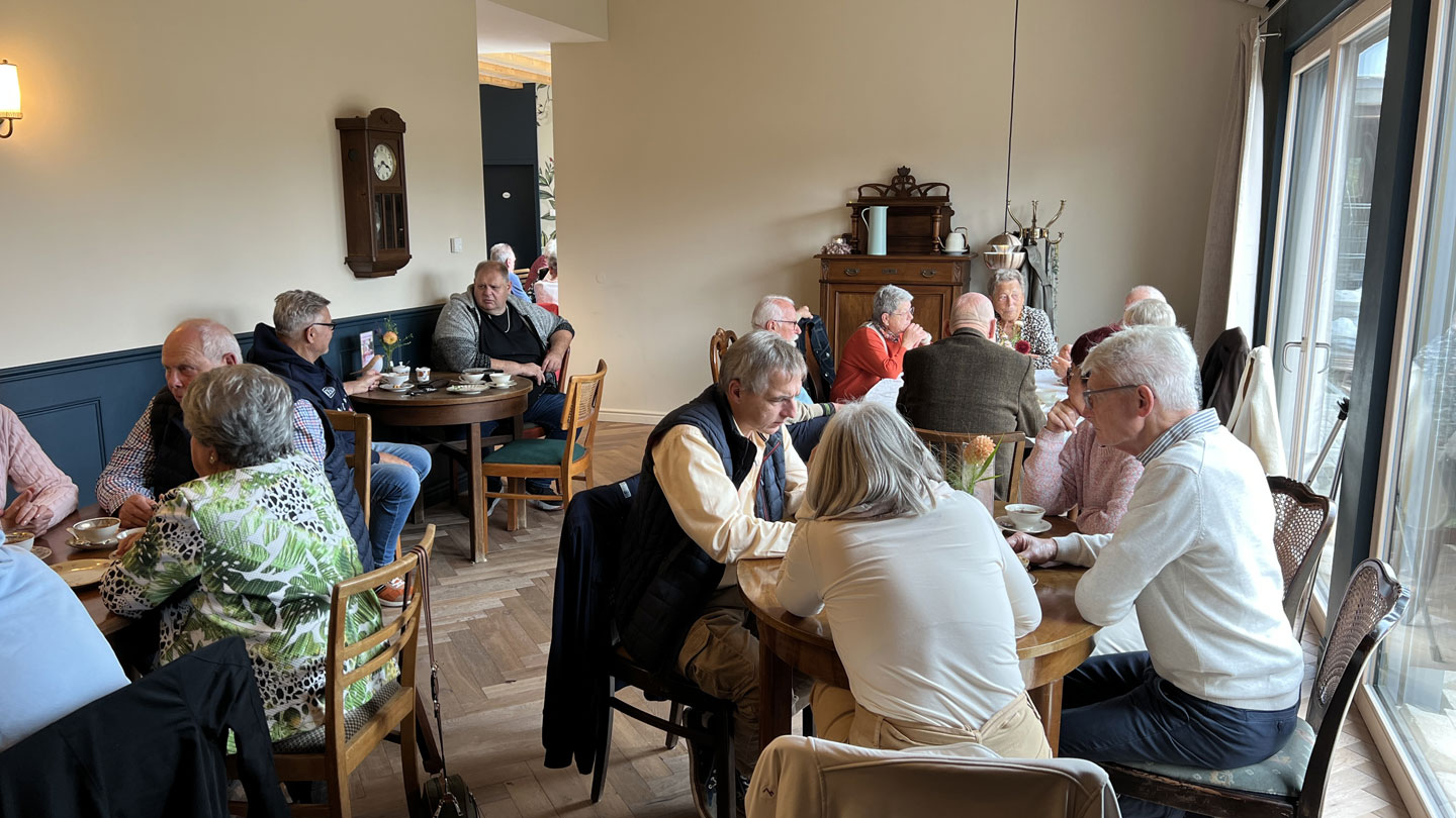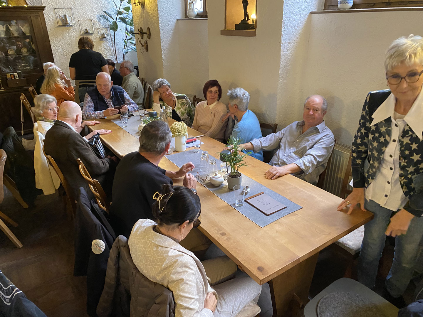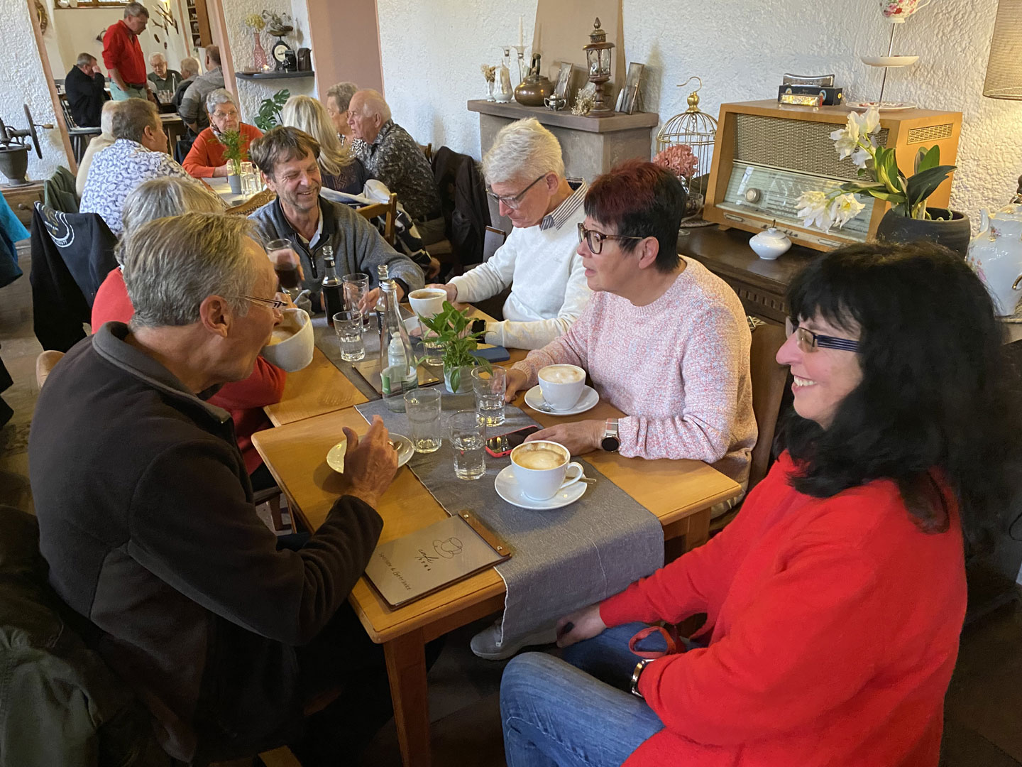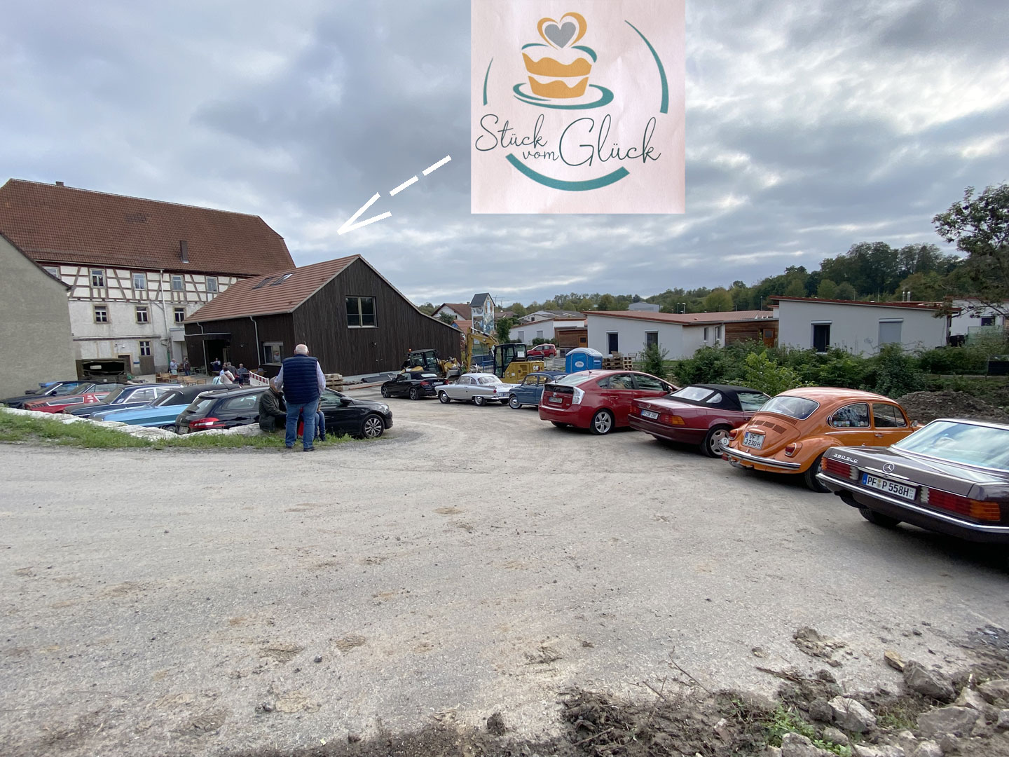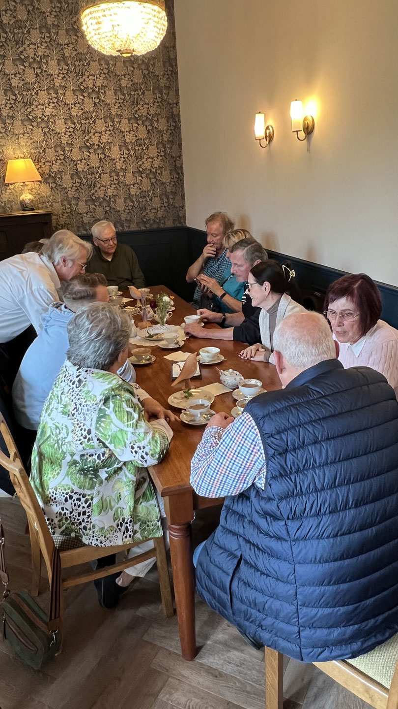 Um 15:00 haben alle Fahrzeuge das „Café Stück vom Glück“ in Flehingen erreicht. Das recht neue Café, eingebettet in einem denkmalgeschützen Mühlen-Areal, gestaltet zur Zeit die Außenanlagen um. Schön ist es geworden, dieses Café. Unser Club besuchte während der Ausfahrt „Die alte Mühle kommt ins Rollen“ diesen Ort in 2019 schon vor dem Umbau. Modern in der Architektur, und mit klassischem Mobiliar und entsprechend passendem Porzellan ausgestattet, herrscht hier eine freundlichen Wohnzimmer-Atmosphäre, trotz über 40 Gästen.