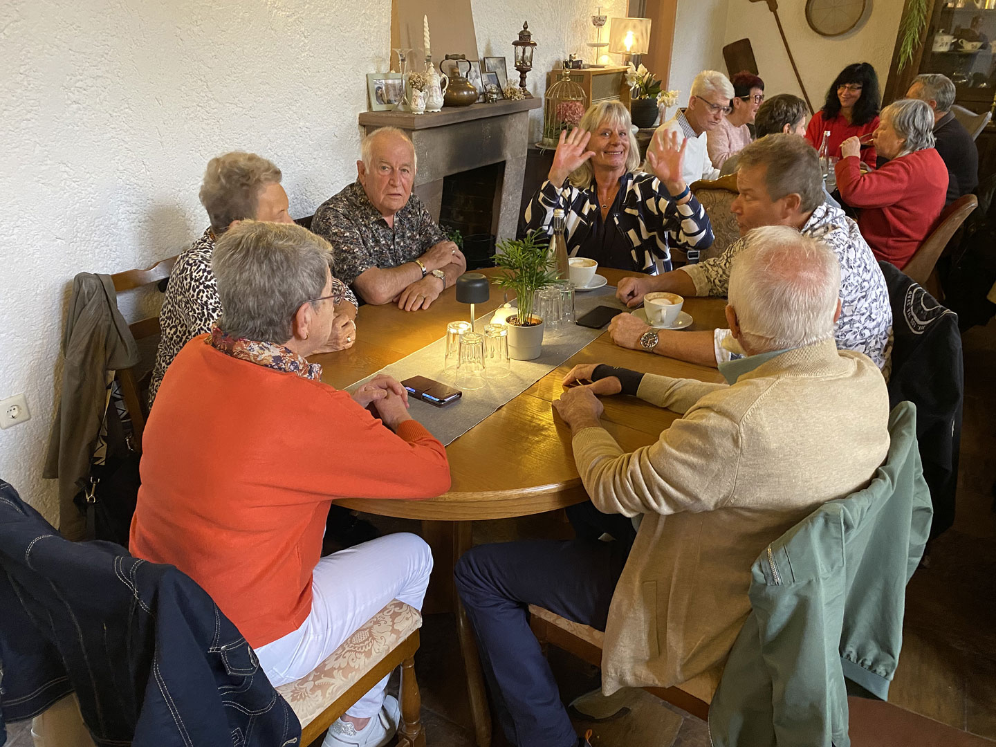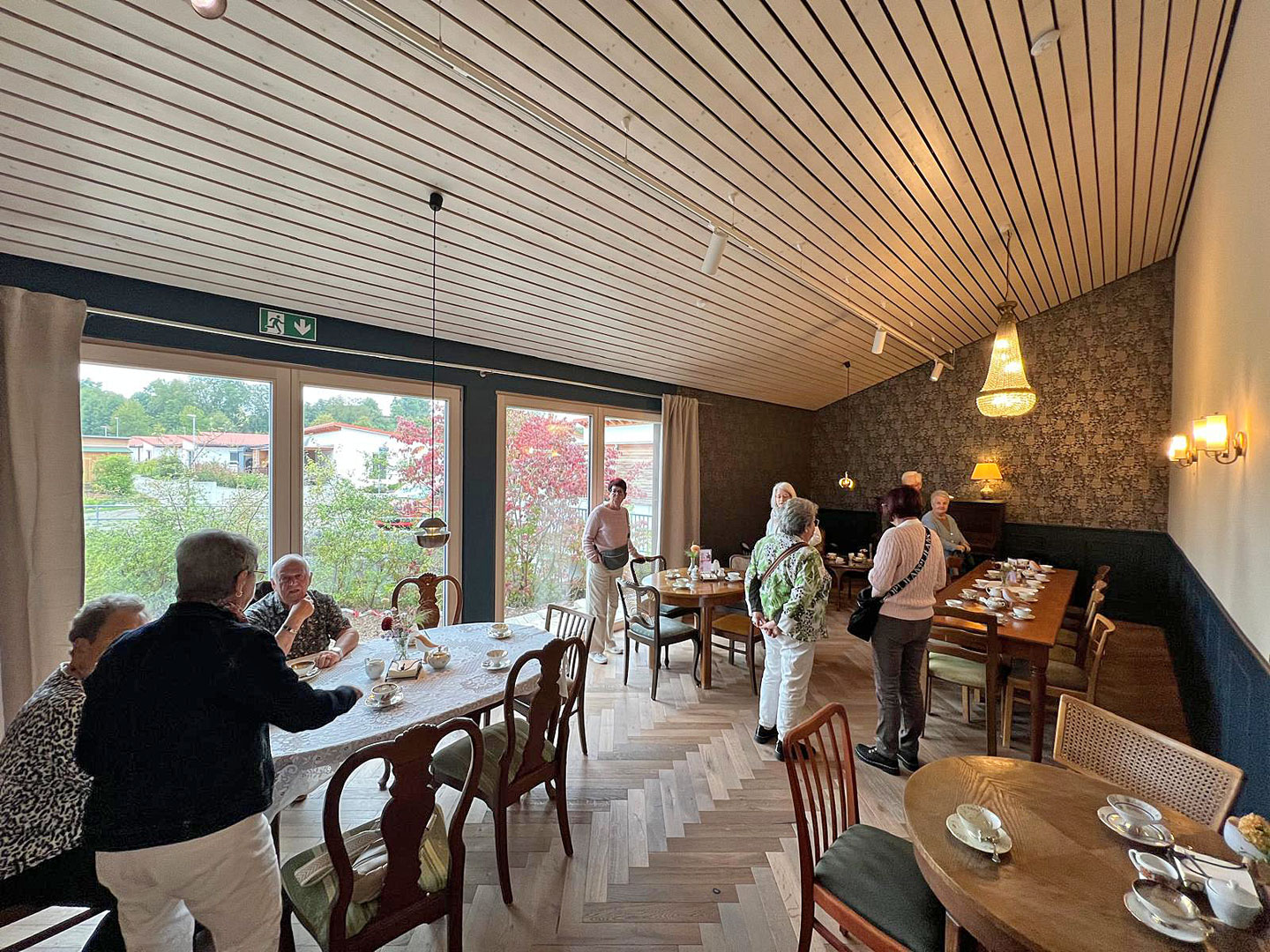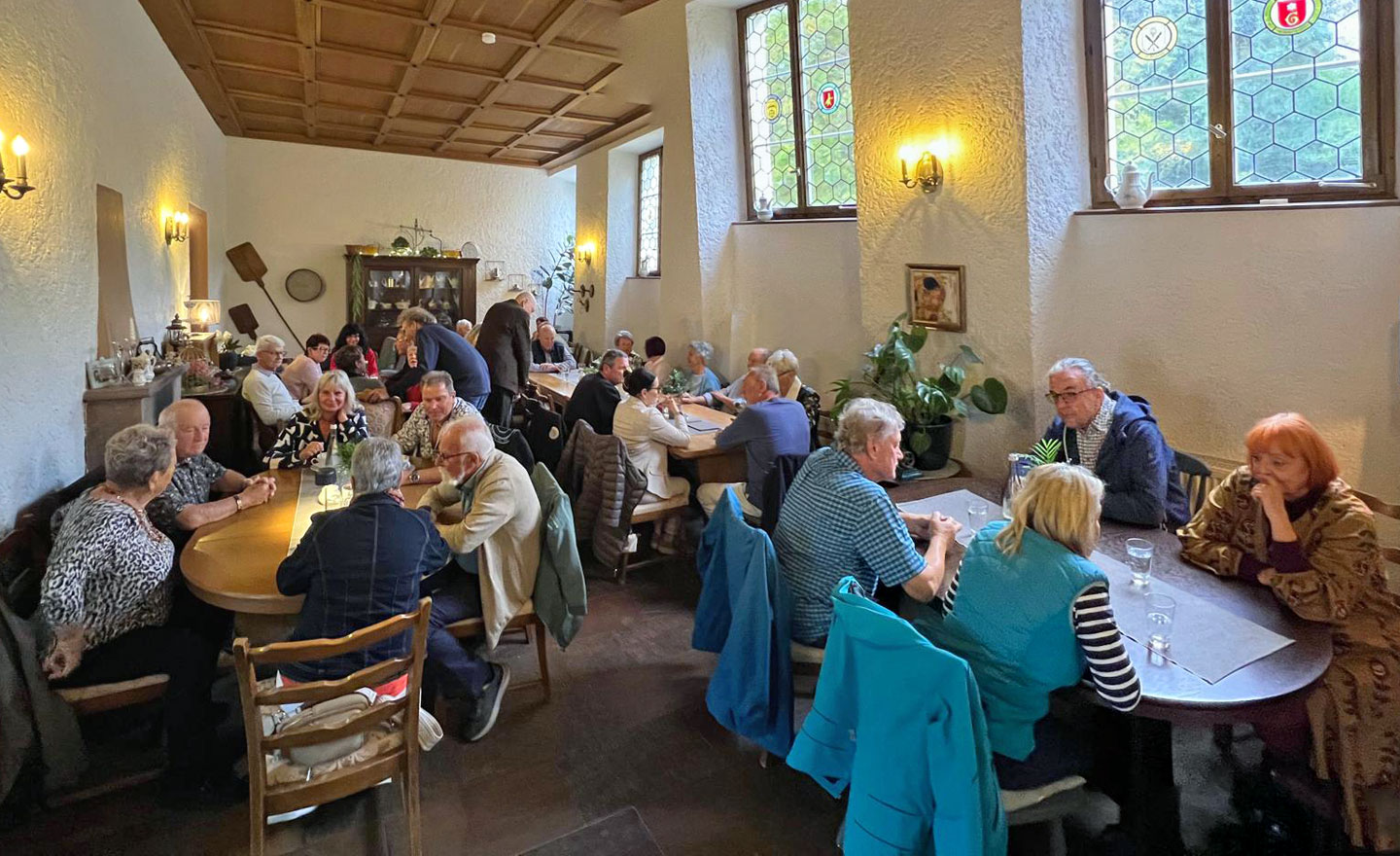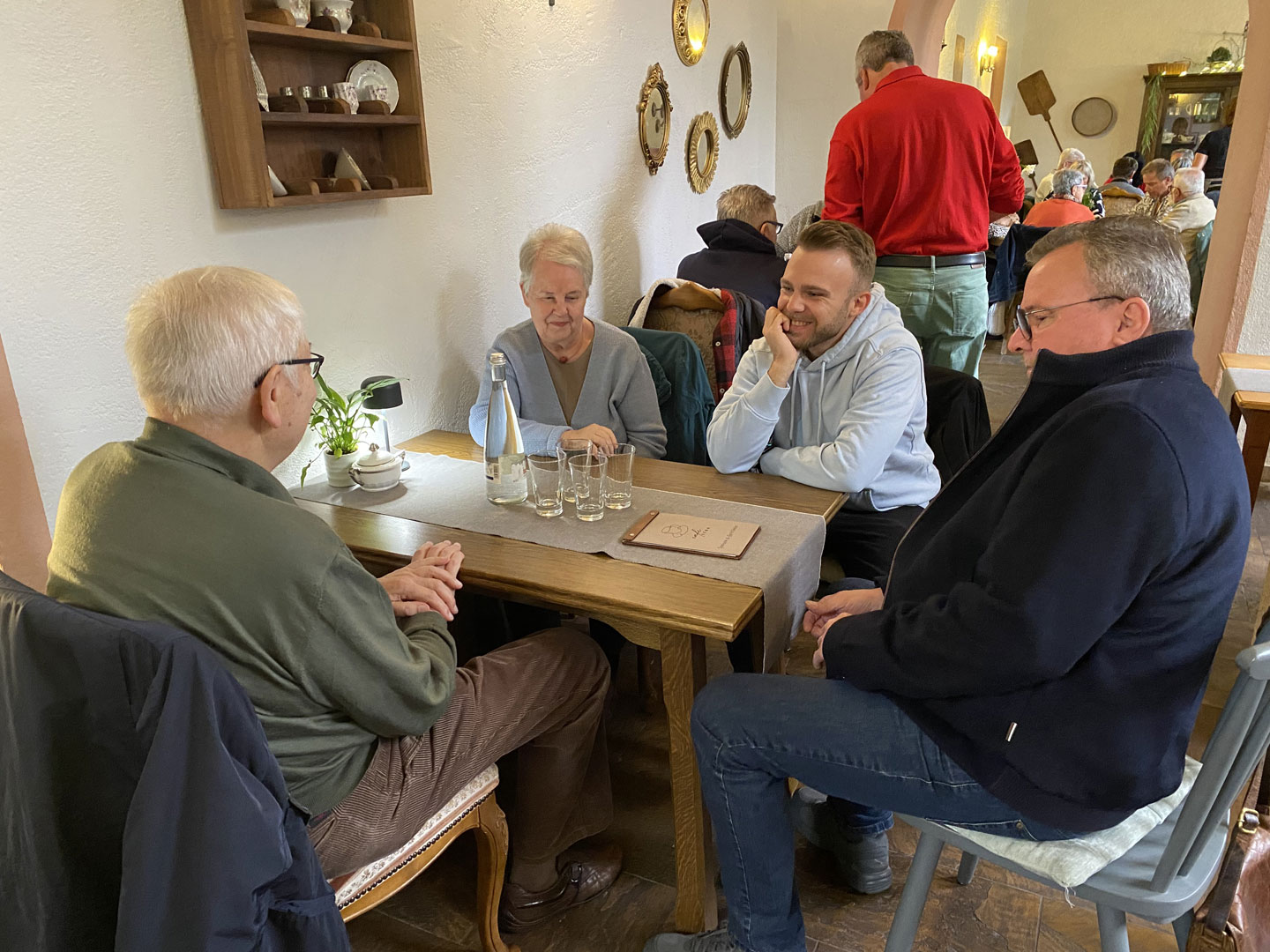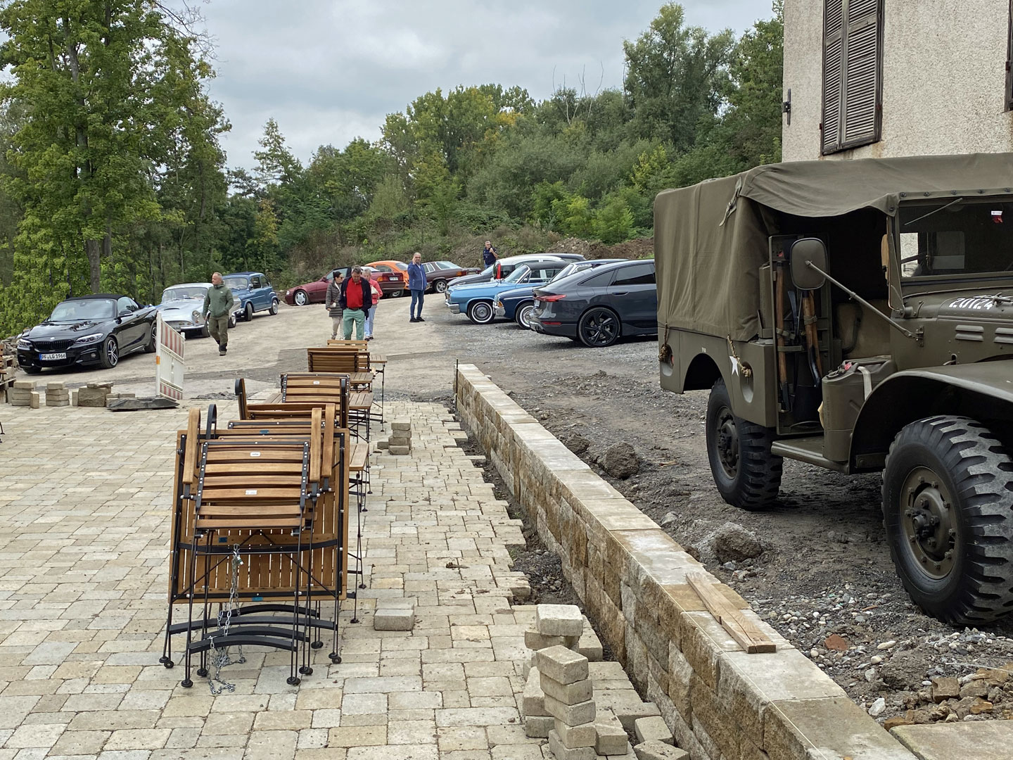 Um 15:00 haben alle Fahrzeuge das „Café Stück vom Glück“ in Flehingen erreicht. Das recht neue Café, eingebettet in einem denkmalgeschützen Mühlen-Areal, gestaltet zur Zeit die Außenanlagen um. Schön ist es geworden, dieses Café. Unser Club besuchte während der Ausfahrt „Die alte Mühle kommt ins Rollen“ diesen Ort in 2019 schon vor dem Umbau. Modern in der Architektur, und mit klassischem Mobiliar und entsprechend passendem Porzellan ausgestattet, herrscht hier eine freundlichen Wohnzimmer-Atmosphäre, trotz über 40 Gästen.