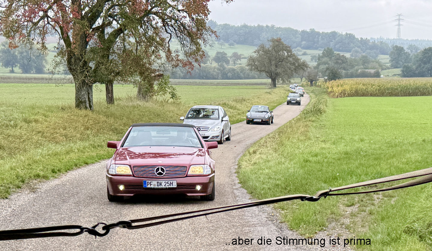 Dass die Sonne es sich mittlerweile hinter den Wolken gemütlich gemacht hat, merken bei der Weiterfahrt vor allem die offen fahrenden Automobilsten. Also Heizung an. Und wo es keine Heizung gibt, müssen dicke Wolldecken, über die Beine gelegt, weiterhelfen.