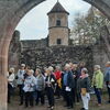 Diese führte uns über Simmersfeld auf den Höhenrücken zwischen Enz und Nagold. Mit bester Fernsicht nun auf die Schwäbische Alb durchfuhren wir Aichhalden, Martinsmoos, Neubulach und Liebelsberg um auf Höhe von Bad Teinach in das Nagoldtal flussabwärts abzubiegen. Unser Etappenziel war nun die Klosterruine Bad Hirsau, die wir rechtzeitig zur anberaumten Führung erreichten. Herr Schellhorn, unser „tour guide“ begeisterte uns Zuhörer durch fundierte Kenntnisse und machte dadurch schlussendlich unsere Tagestour zu einem rundum gelungenen Erlebnis.