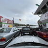 Eng geparkt, fanden alle 13 teilnehmenden Oldtimer und Youngtimer auf der Fähre Platz.