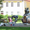 Wer gut isst, der sollte anschließend etwas die Beine bewegen. Sprach’s und ab ging der Spaziergang zum nahe gelegenen Wasserschloß Menzingen. Der Park ist sehr weitläufig und lädt zum Verweilen ein. Die Skulpturen sind erfrischend anders und bilden einen guten Kontrast zum Ambiente der Parkanlage. Das haben wir sehr genossen, die Bilder belegen das wohl.