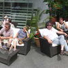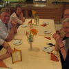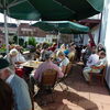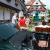 Empfangen werden wir von 3 Paaren, die schon etwas länger hier sind und die Getränke auf der Terrasse schon kennen. Nach kurzer Zeit ist die Terrasse dicht, lauter Oldtimerfreaks, die nun zwar ein Bierchen gefunden haben, aber noch Schatten suchen. Ja, Petrus war mit uns, wir sollten es schön warm haben am Jubiläumstag.