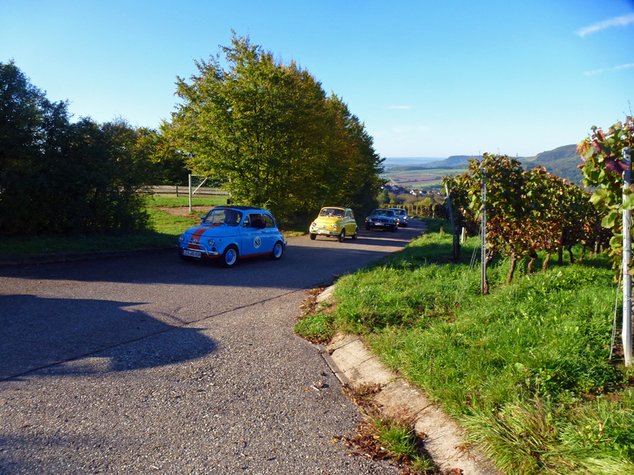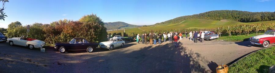 Treffpunkt in Niefern um 9.oo Uhr auf dem REWE-Parkplatz an der B10 . Es ist 9.05 Uhr alle Teilnehmer stehen startbereit zur heutigen Ausfahrt. Das Wetter zeigt sich, wie nicht anders bestellt, von seiner besten Seite. Nachdem alle Fahrunterlagen verteilt sind, geht es los, 54 Personen mit ihren25 Fahrzeugen setzen sich in Bewegung.