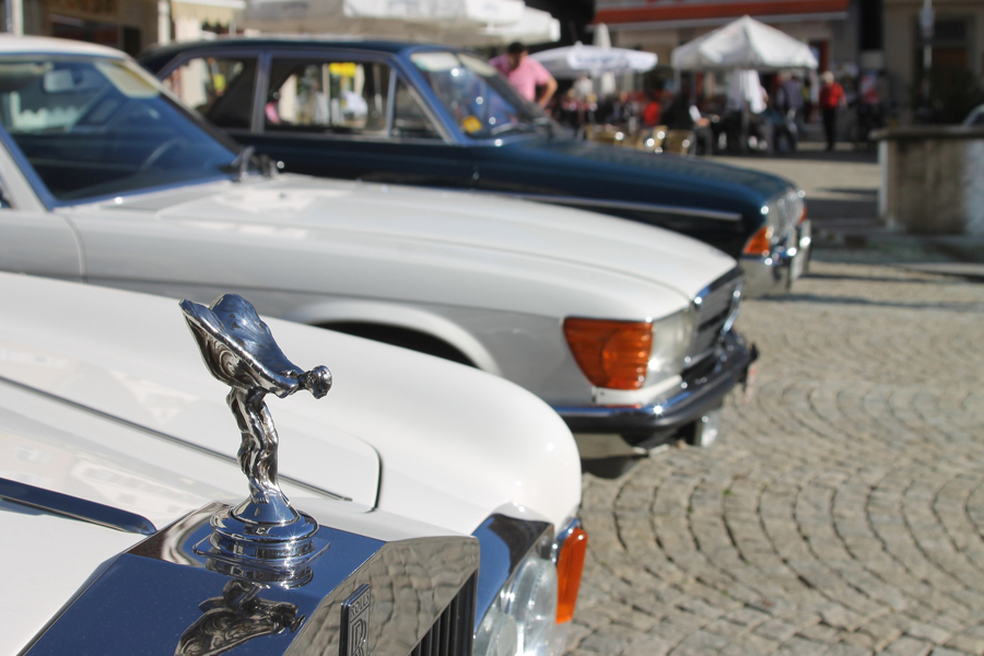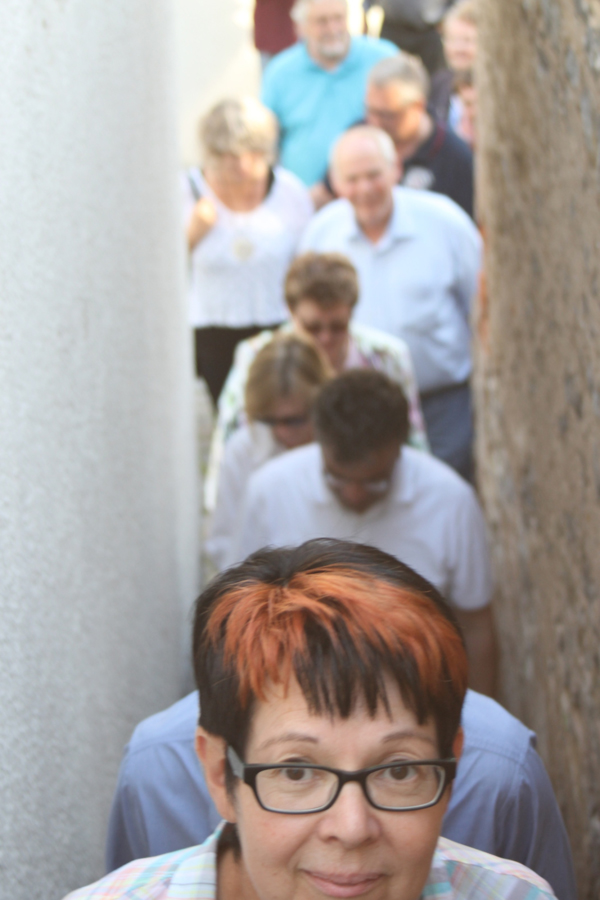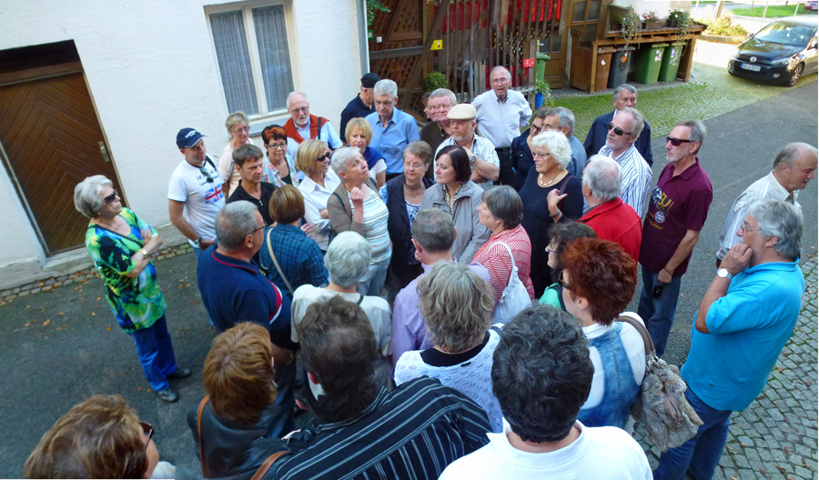 Um 16.00 Uhr beginnt die Stadtführung. Frau Schmidt vom Touristikbüro Vaihingen führt uns mit profundem Wissen durch die Stadt Vaihingen und deren geschichtliche Entwicklung. Zwischenzeitlich haben sich einige Bürger und Familien eingefunden, um unsere Schätzchen zu besichtigen und zu bewundern. Auch zwei Gäste mit ihren Oldtimern haben sich zu uns gesellt. So ergeben sich dann die obligatorischen Benzingespräche auf dem Marktplatz.