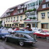 Der Start am Donnerstag bescherte uns Traumwetter, die Cabrio-Teams dankten es mit roten Köpfen. Nach verschlungenen Pfaden (wer denkt sich nur solche Strassen aus ??) erreichten wir den Aussichtsberg Höchsten. Nach dem herrlichen Blick Richtung Bodensee erst mal Kaffe trinken im Gasthaus. Prima Eisbecher! Der schwäbische Mundartweg, den der Wirt erdacht hat, hat uns sehr erheitert und wir machten uns auf den Weg nach Friedrichshafen-Fischbach, wo uns ein tolles Hotel mit familiärem Service begüsste: das Hotel Maier.