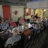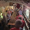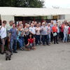 Jetzt aber aufgesessen. Gleich drei Traktoren (einer davon ein Lamborghini) ziehen die bunten Wägen durch die Orte und die Weinberge. Die Stimmung ist perfekt, an jedem der drei Haltepunkte werden wir durch Vater und Sohn Schmidlin in die Geheimnisse des Kaiserstühler Weinbaus eingeführt und genießen diesen auch. Zudem immer wieder tolle Aussichten und Geschichten. Ein leckerer und lehrreicher Nachmittag, an dessen Ende leider etwas Regen tröpfelt. Daher speisen wir auch leider nicht auf der Terrasse (L), sondern im Lokal, was uns aber egal ist, der Tag hat’s gebracht – und ist noch nicht zu Ende. Denn der Chef des Hauses, Herr Baptist zeigt uns noch beim Nachbarn eine alte Ölmühle für Walnussöl, die aber noch voll funktionstüchtig ist.