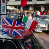 Drapiert mit den entsprechenden Landesflaggen stehen gegensätzliche italienische Fahrzeuge wie z.B. ein Fiat Topolino und ein Lamborghini Diablo nebeneinander, auf der anderen Seite des Portals grüßen u.a. ein Mini und ein Rolls Royce aus England.