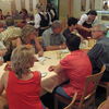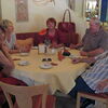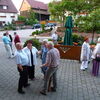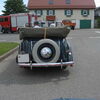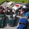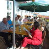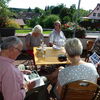 Empfangen werden wir von 3 Paaren, die schon etwas länger hier sind und die Getränke auf der Terrasse schon kennen. Nach kurzer Zeit ist die Terrasse dicht, lauter Oldtimerfreaks, die nun zwar ein Bierchen gefunden haben, aber noch Schatten suchen. Ja, Petrus war mit uns, wir sollten es schön warm haben am Jubiläumstag.
