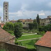 Der letzte Tag vor Ort, so ergab es sich dann eben, war ebenfalls ein Highlight. Dass uns Pisa gefallen würde, davon sind wir schon vorher ausgegangen. Wir wurden nicht enttäuscht. Der Knaller war aber das kleine Städtle Lucca, das uns von der fachkundigen Simonetta vermittelt wurde. Einfach nur schön, diese von einer gewaltigen Stadtmauer (eigentlich mehr ein breiter Wall) umsäumten Stadt. Der Wolkenbruch am Nachmittag (das Eis war gerade geschleckt) hat eher Spaß als Frust gemacht – Die Schirmverkäufer hatten übrigens Hochsaison. Na ja, was bleibt noch: die Heimfahrt eben. Muss halt sein. Mit Abstecher an den Comer See und – na klar – Picknick direkt am Ufer ein würdiger Abschied aus Italien. In Bötzingen dann großer Abschied nach einem leckeren Abendessen und schon war eine Woche, gefüllt mit allerlei Erlebnissen, wieder zu Ende.