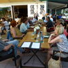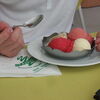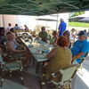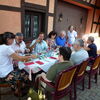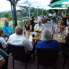 Gesagt getan, bald waren wieder alle zusammen und fuhren weiter nach Munchhausen in das Restaurant a la Rose, wo das Mittagessen bestellt war. Die Terrasse unter den beiden großen Platanen war schon vorbereitet, die Tische eingedeckt und zusätzlich beschattet durch Sonnenschirme. Die Idee, das Essen bereits mit der Anmeldung zu bestellen, zahlte sich aus,denn obwohl wir mit rd. 50 Personen zugegen waren, gab es keine lange Wartezeiten. Zumindest waren kulinarisch alle zufrieden, als wir uns gegen 14:00 Uhr für die Weiterfahrt bereit machten.