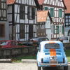 Durch kleine Dörfer mit blumengeschmückten Fachwerkhäusern und schmale Straßen durch eine leicht hügelige, von Landwirtschaft geprägte Gegend kreuzten wir ein paar Mal die Maginot-Linie, fuhren durch Ortschaften wie Birlebach oder Drachenbronn, überquerten den Col du Pfaffenschlick und gelangten dann nach Woerth, dem zweiten Anlaufpunkt unserer Ausfahrt. Hier stand eine Besichtigung des Museums von 1870 auf dem Programm. Ein etwa 10 minütiger Film schilderte die Geschehnisse, die um Woerth herum zum Ausbruch der Schlacht zwischen Franzosen und Deutschen im Jahr 1870 geführt hatte. Sicher ein etwas schweres Thema für solch eine Ausfahrt, aber die Rast unter den alten Bäumen im ehemaligen Schloßpark am Museum hatte auch etwas für sich.